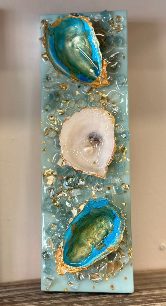 or 8x8 canvas (2 oysters) 11x14 canvas (3 oysters) or framed oyster art (5 oysters)